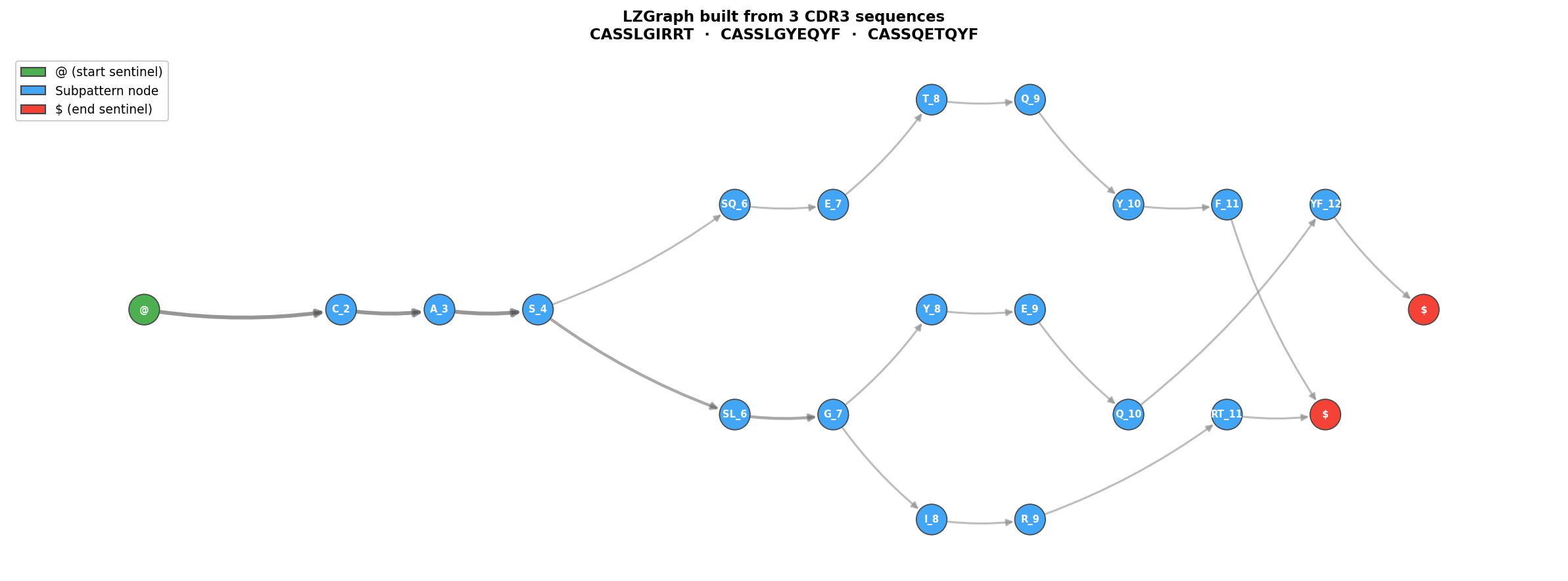 graph = LZGraph(['CASSLEPSGGTDTQYF', 'CASSDTSGGTDTQYF', 'CASSLEPQTFTDTFFF'],